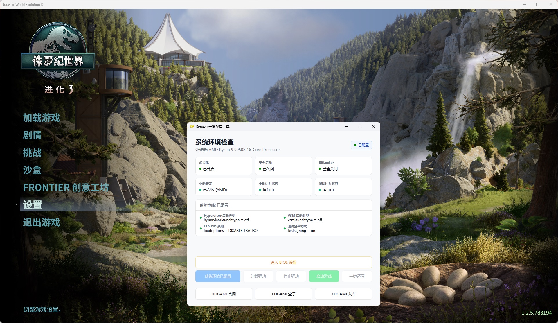 重启电脑后继续打开Denuvo.exe点击 安装驱动 → 启动驱动 → 启动游戏 → 开始玩耍